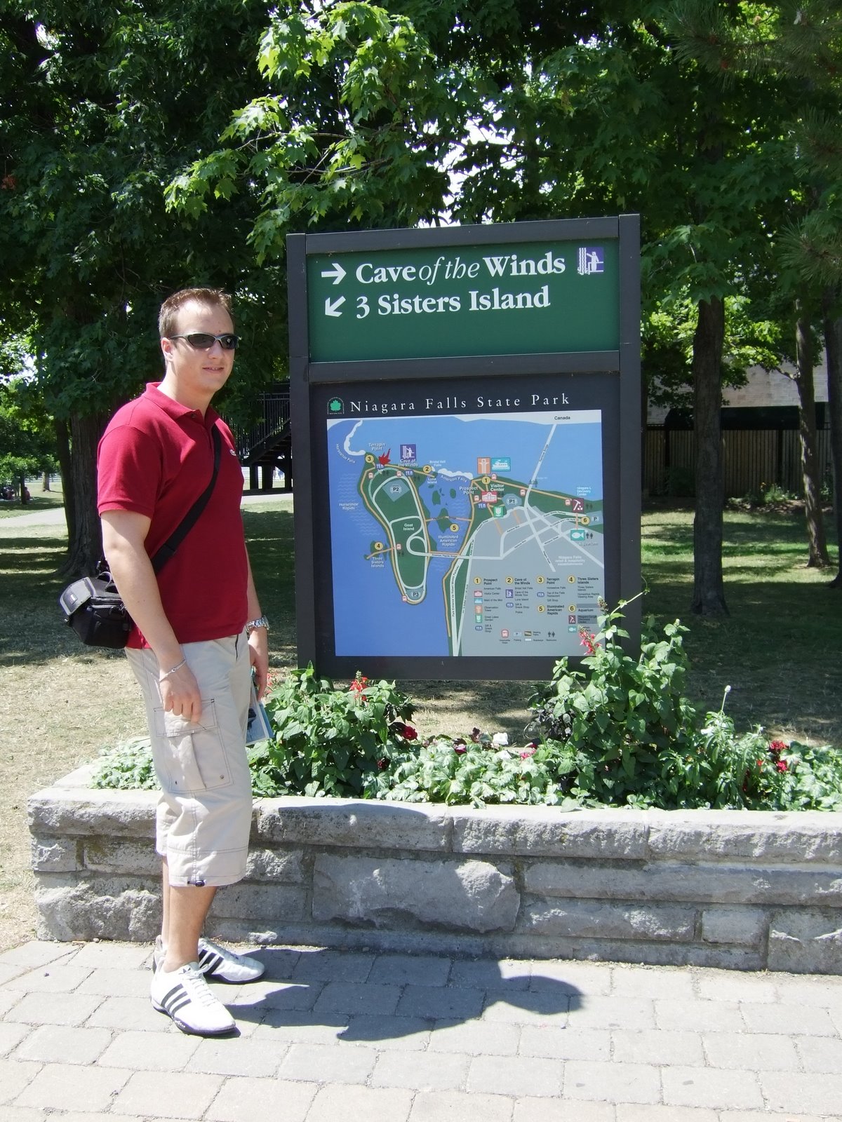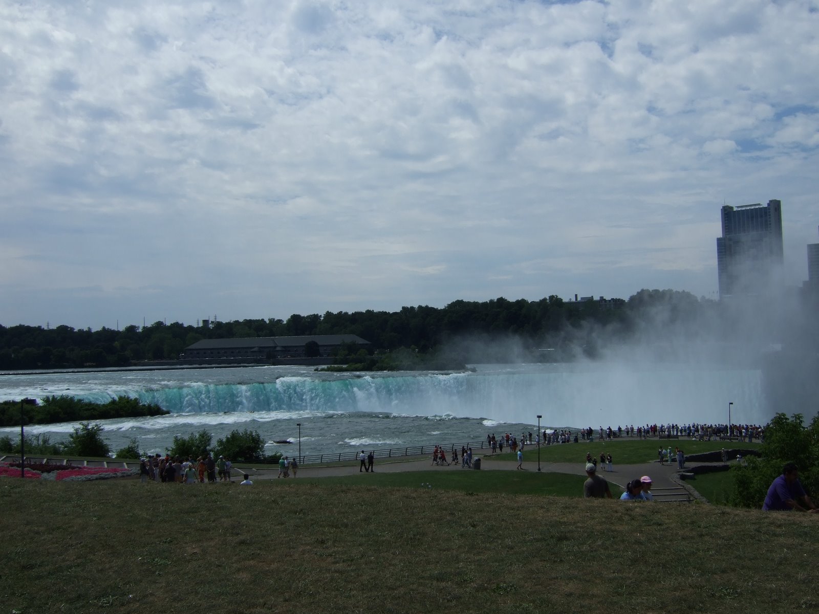 Sonntag morgen kamen wir dann an den Niagara Falls an und haben auf Goat Island, der Insel im oberen Teil in der Mitte der Fälle, geparkt. Links befinden sich die Horsetoe Falls (Hufeisen Fälle) und rechts der kleinere Teil der Niagara Fälle.
