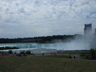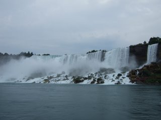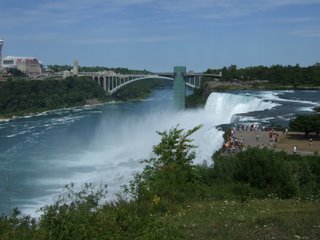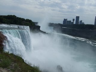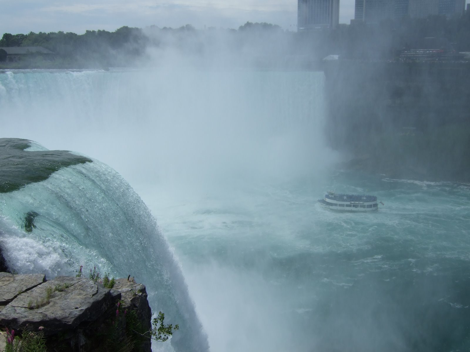Gegenüber sieht man die canadische Seite, von der man direkt auf die Wasserfälle schauen kann.