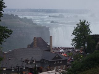 Im Hintergrund die Touristenstadt der canadischen Seite für die Niagara Falls. Ein kleines LasVegas mit Hotels, Restaurants, Casinos...